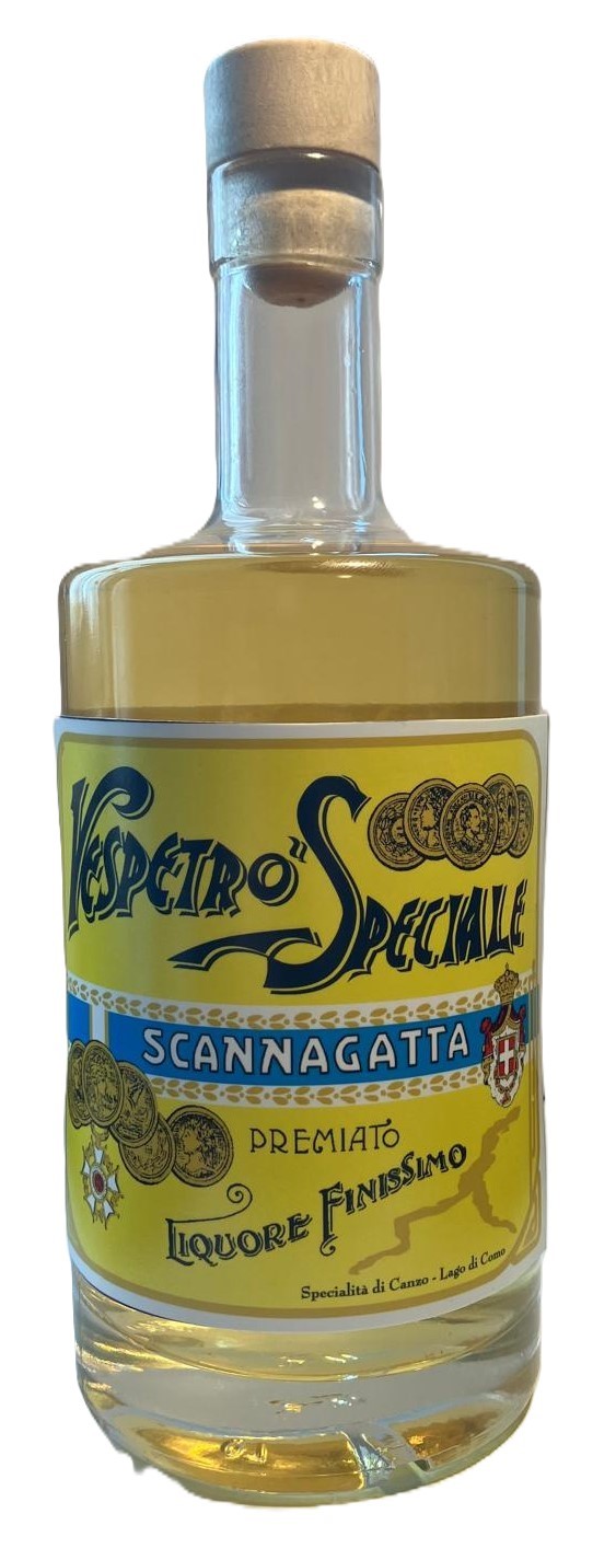 La sua storia è molto lunga, inizia nella prima metà del 1800 a seguito dell’invasione napoleonica. I soldati savoiardi amavano preparare una bevanda liquorosa che consentiva di scaldare le fredde e lunghe notti di veglia. Il farmacista locale ne copiò la ricetta, la modificò e creò il Vespetrò Speciale. L’inventore di questo liquore si chiamava proprio Scannagatta e rese segreta la formula di questa preziosa bevanda. Nel 1900, il Vespetrò Speciale vinse la medaglia d’oro all’esposizione mondiale di Parigi. Nel 1991, i Signori Tovaglieri di Canzo, gli ultimi titolari della ricetta, decisero di fermare la produzione perché pareva non interessare più a nessuno e il prodotto rischiò di sparire dalla circolazione.